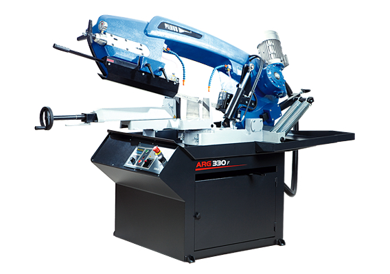 - Masívne systém natáčania ramena s veľkými ložnými plochami zaručuje mimoriadnu stabilitu stroja i pri rezaní ťažkých obrobkov.