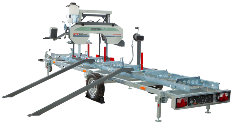 Prepravný vozík je vybavený šiestimi robustnými, plynule nastaviteľnými podpernými nohami. To zaručuje stabilitu ako pri nakladaní kmeňa a manipuláciu s kmeňom, tak aj pri samotnom rezaní. Jednoduché nakladanie kmeňa na ložnú plochu stroja pomocou manuálneho navijaku a dráhy pre navalení kmeňa (príslušenstvo). Prepravný vozík je homologovaný vrátane pojazdových sekcií, upínačov materiálu a výklopných uholníkov. Pri vybavení nového osvedčenia na STK je nutné z vozíka odstrániť pojazdový most s ramenom pílového pásu.