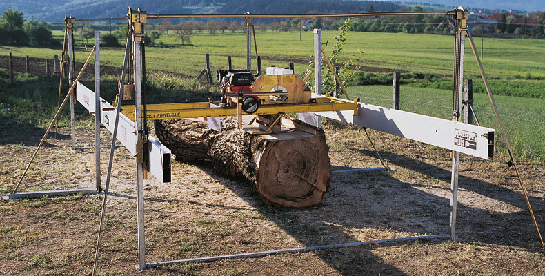 SWIVEL má jeden pílový kotúč, ktorý reže horizontálne pri posuve vpred, potom sa otočí o 90 ° a reže vertikálne pri spätnom chode. Oba chody sú produktívne – nestráca sa čas s vrátením vozíka alebo otáčaním kmeňa na výrobu hranolov (max. 210 x 210 alebo 420 x 210 pri obojstrannom rezu). Pílový kotúč s priemerom 570 mm so špičkami z tvrdokovu vytvára hladký povrch a zuby zostávajú veľmi ostré po dlhú dobu. Špičkový výkon zaisťuje výkonný benzínový motor HONDA 15,5 kW. Veľmi jednoduchá montáž i obsluha stroja.